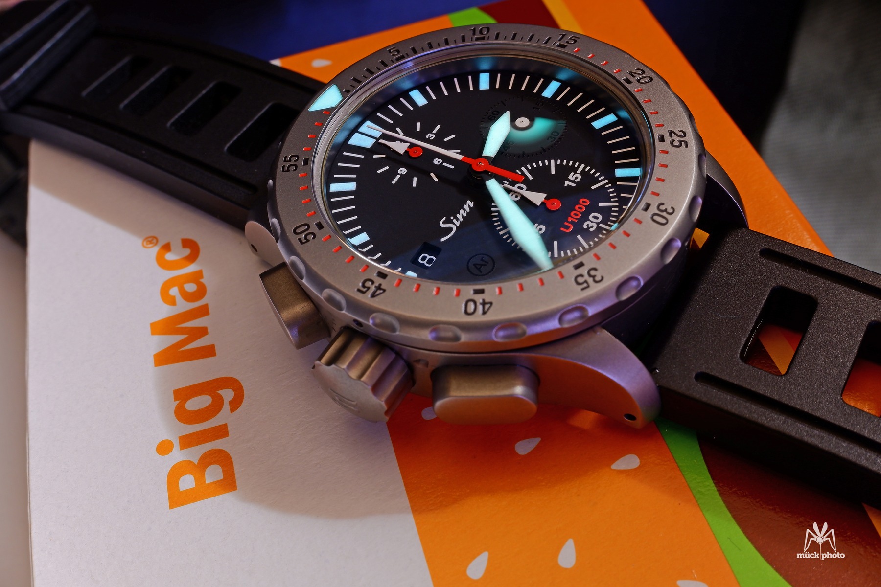Tragen tue ich die U1000, wie auch die U212, am ISOfrane Silikonband, welche ich mit dem Bandverlängerungs- Element bevorzuge und einfach nur liebe. Dick, ebenfalls robust und im Alltag schwitzt die Haut darunter nicht so.
