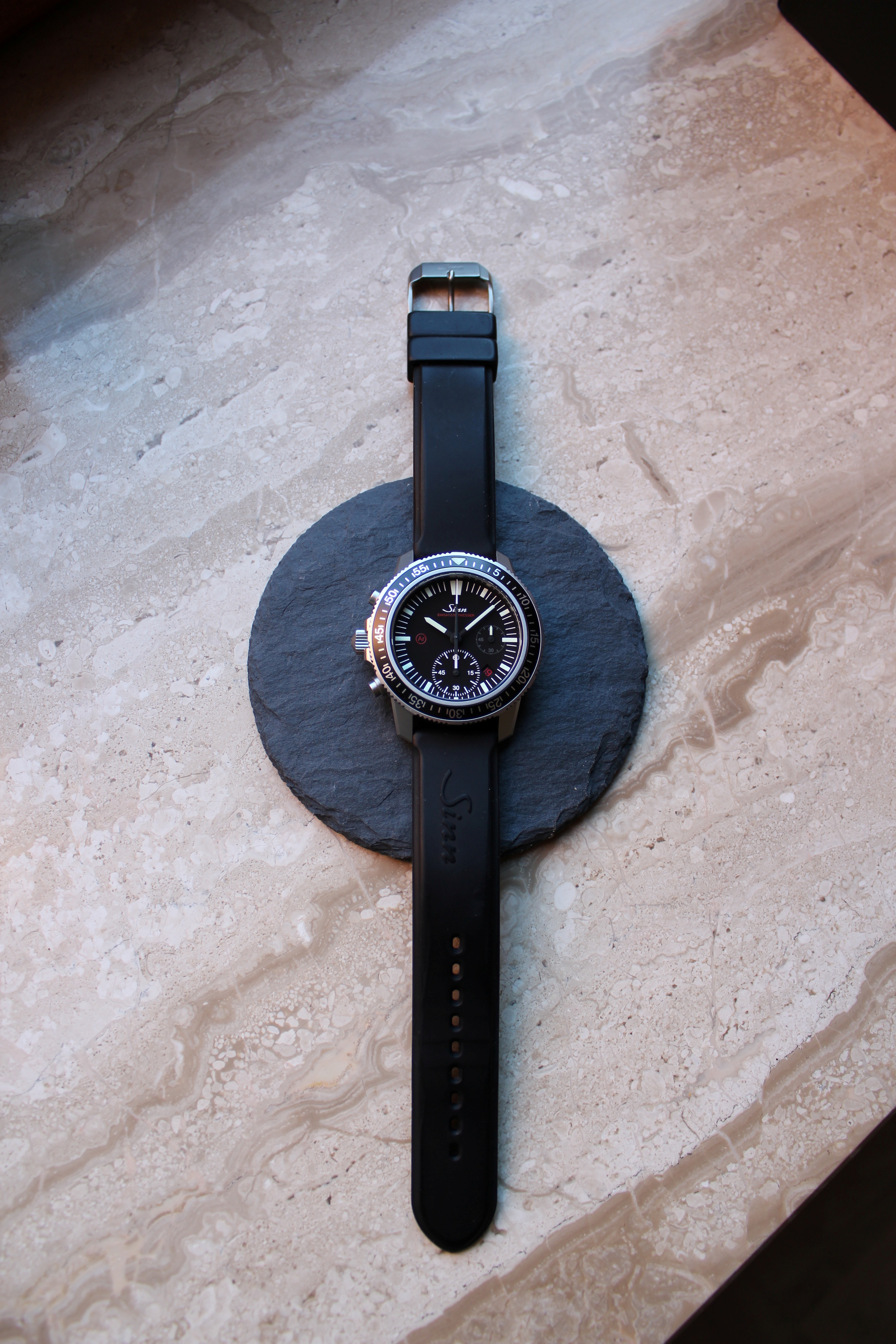 - dem schwarzen Sinn-Lederarmband mit Gehäuseintegration (Cargo-Version)