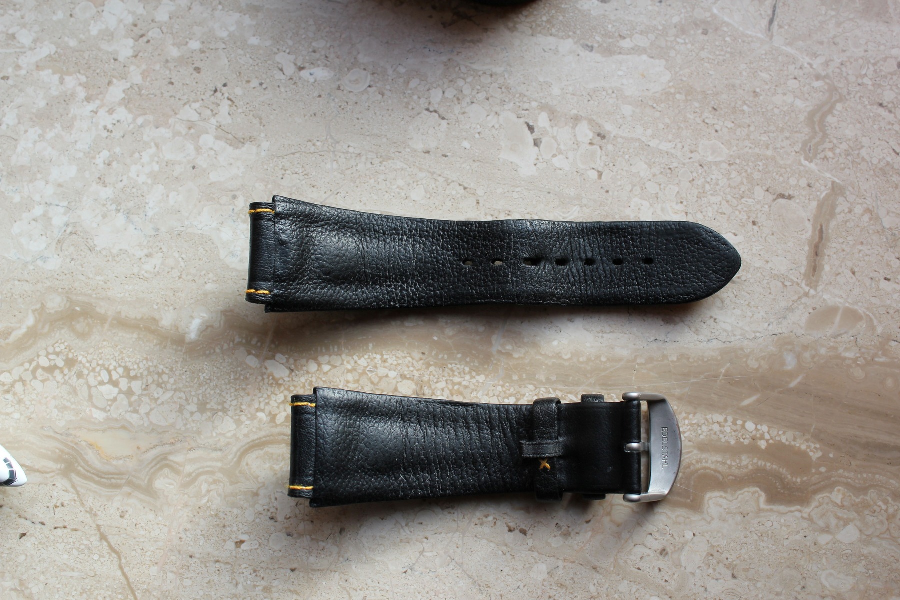 Das Band wurde nur eine Handvoll mal getragen und hat keine Abnutzungen. Auch die Schließe ist tadellos.