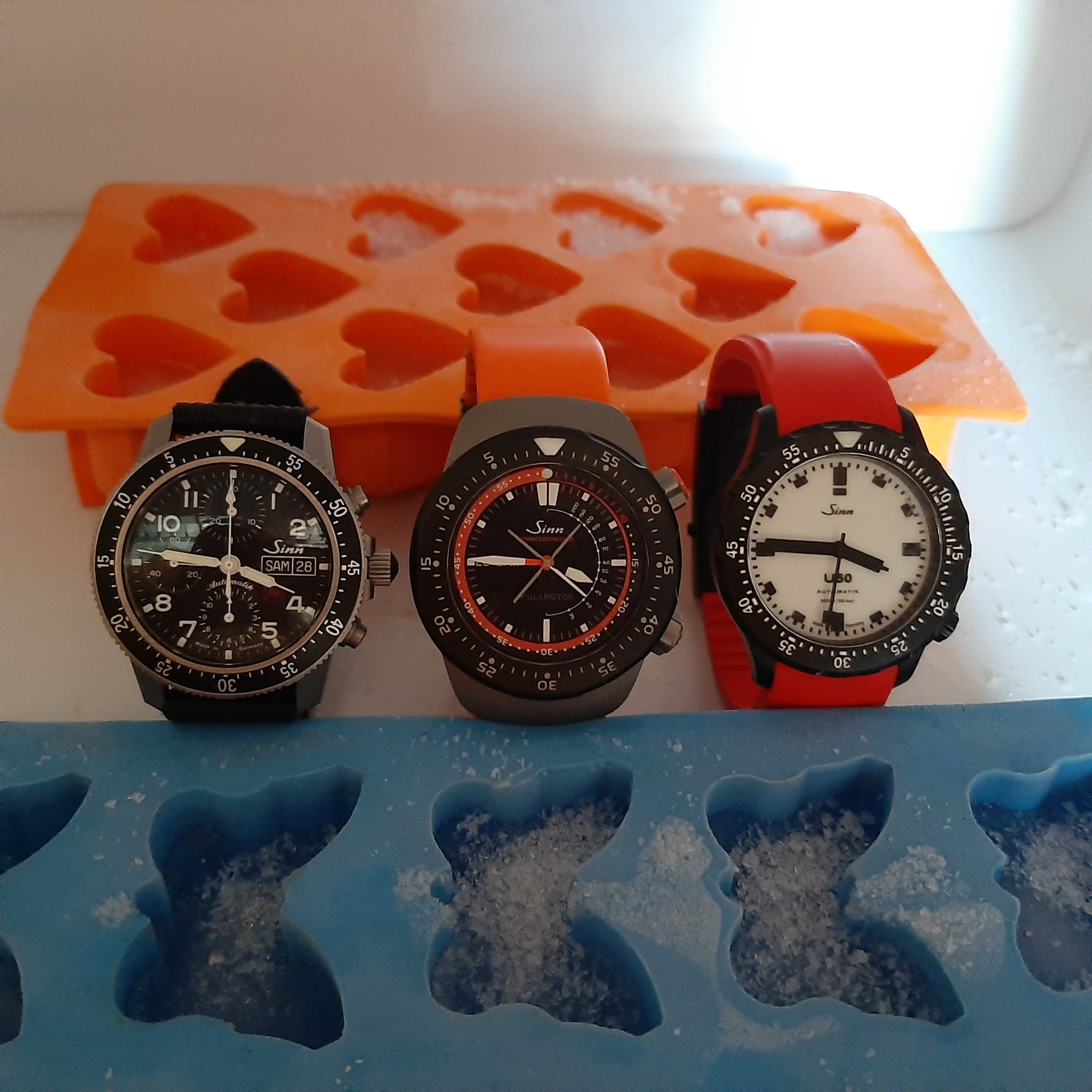 Weiterhin erscheinen mir jedenfalls die Funktionen sowohl der 103 als auch der EZM12 absolut notwendig (das nennt man wohl auch Selbst-Suggestion). Die Wahrheit ist wohl: die Uhrzeit zeigen alle an und wie lange die Nudeln im Wasser oder die Pizza im Ofen liegen, lässt sich auch mit allen leicht abmessen.