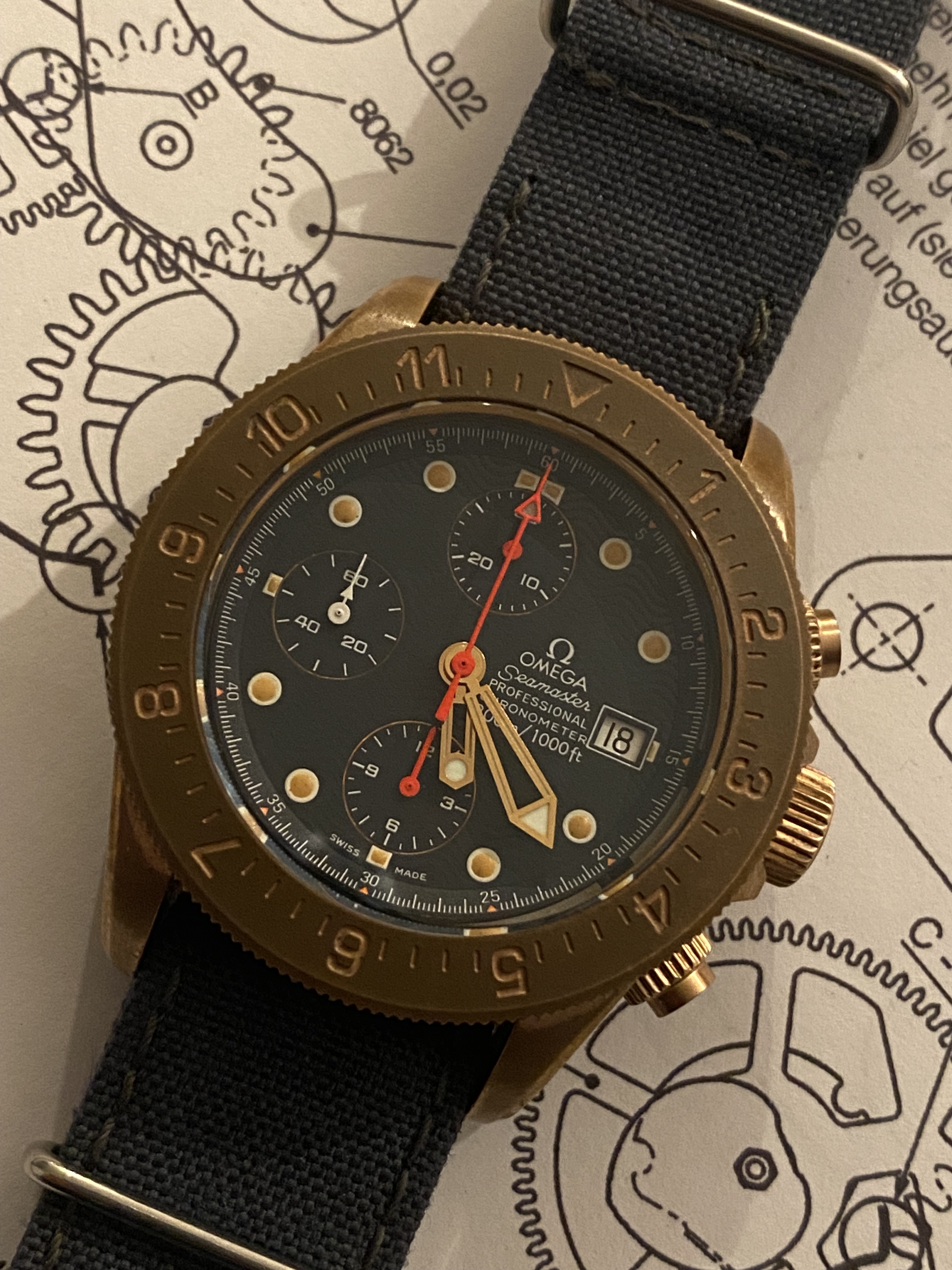 Meine Steam Punk Hommage an die Seamaster Chrono Diver im Bronze Prototypengehäuse