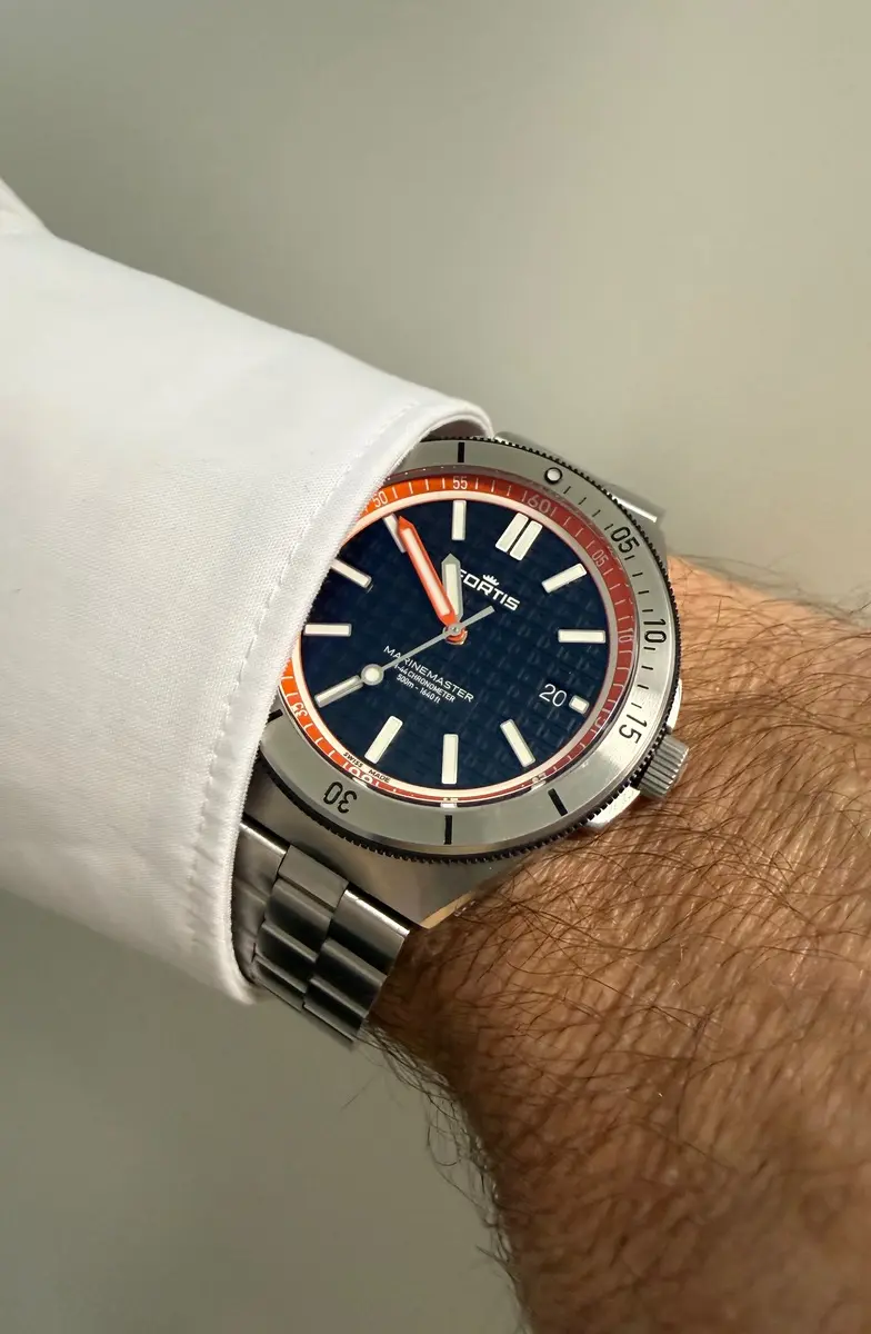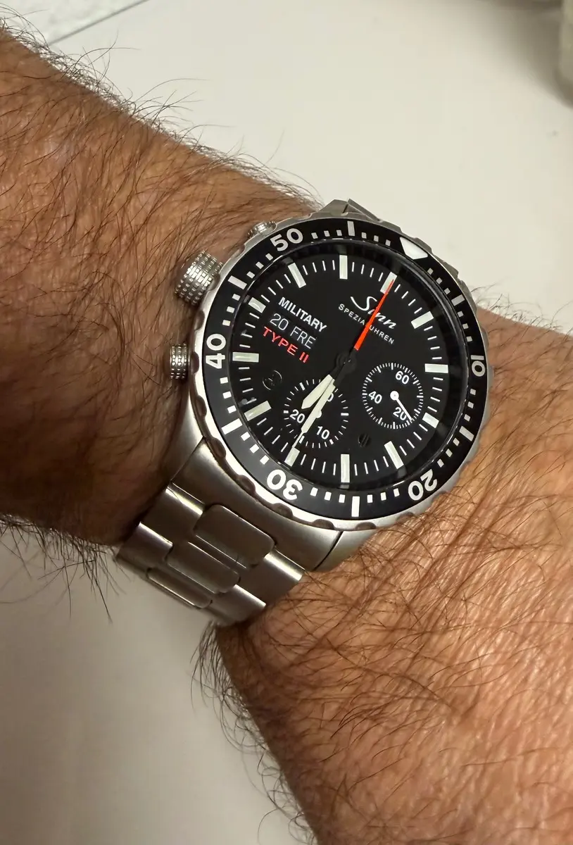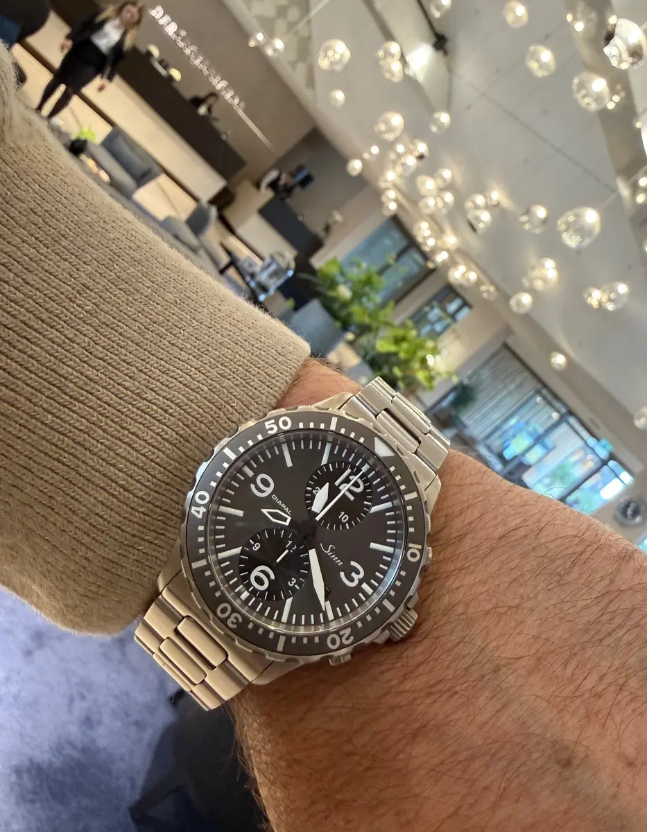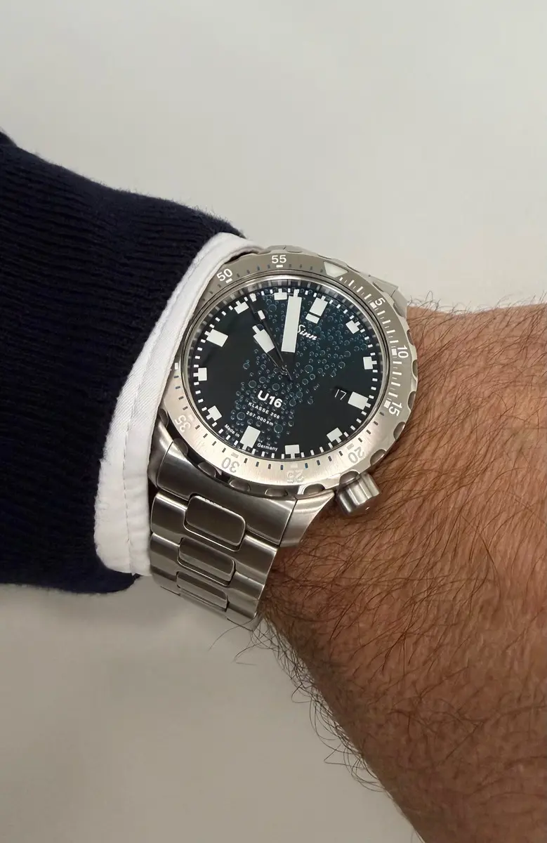 Ja genau, vor allem weil sie so flach ist. Das passt nicht zwingend zum Bild der Einsatzuhr, aber damit schlüpft sie auch als 44mm ganz locker luftig unter die Hemdmanschette.
