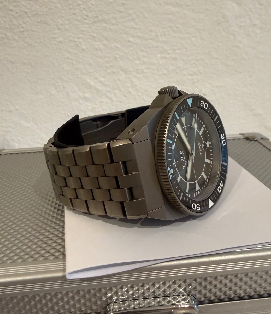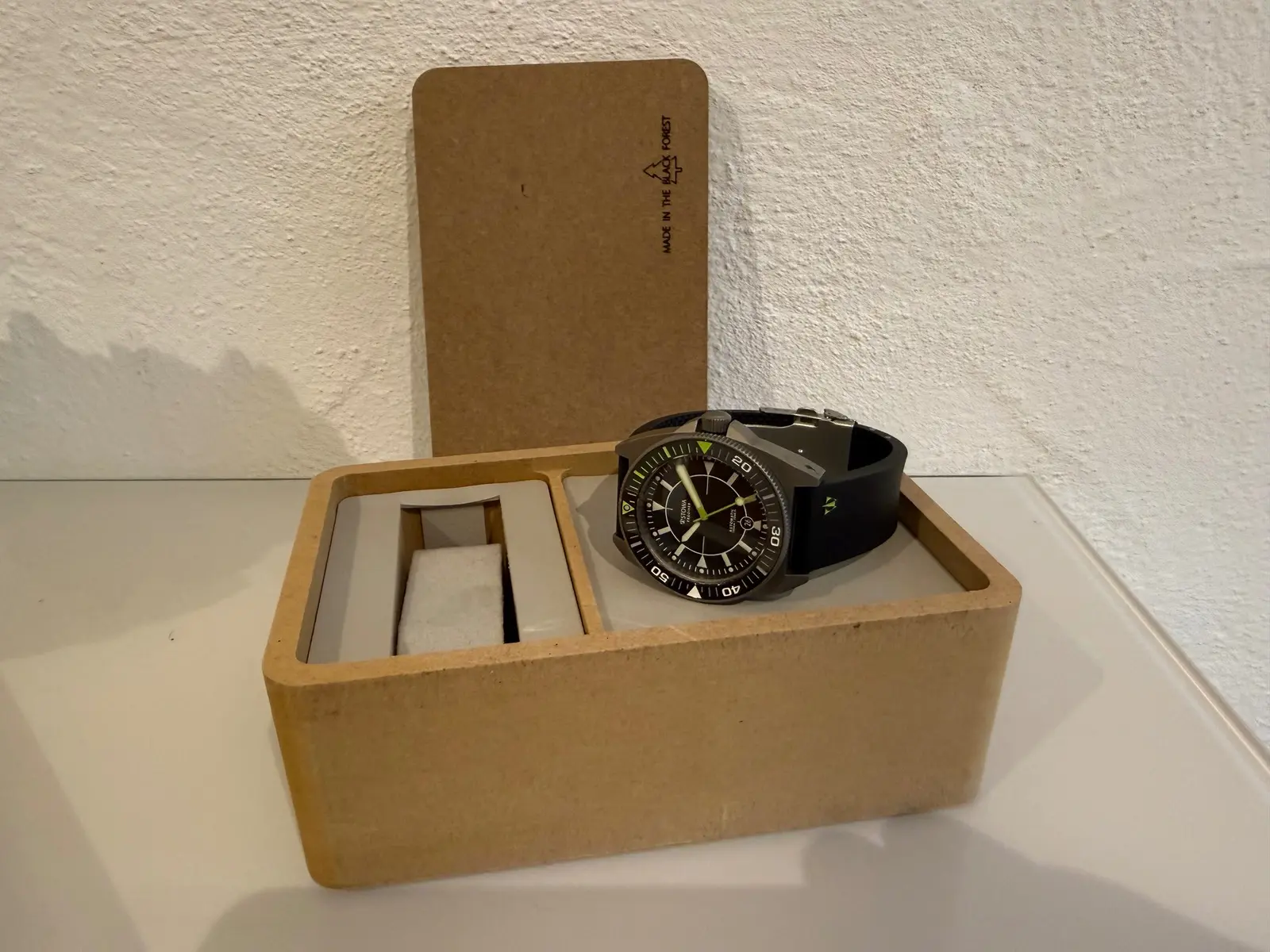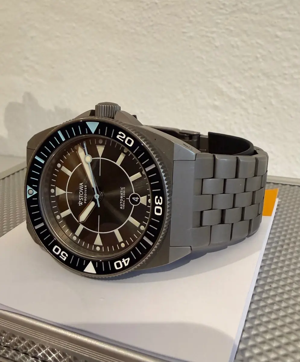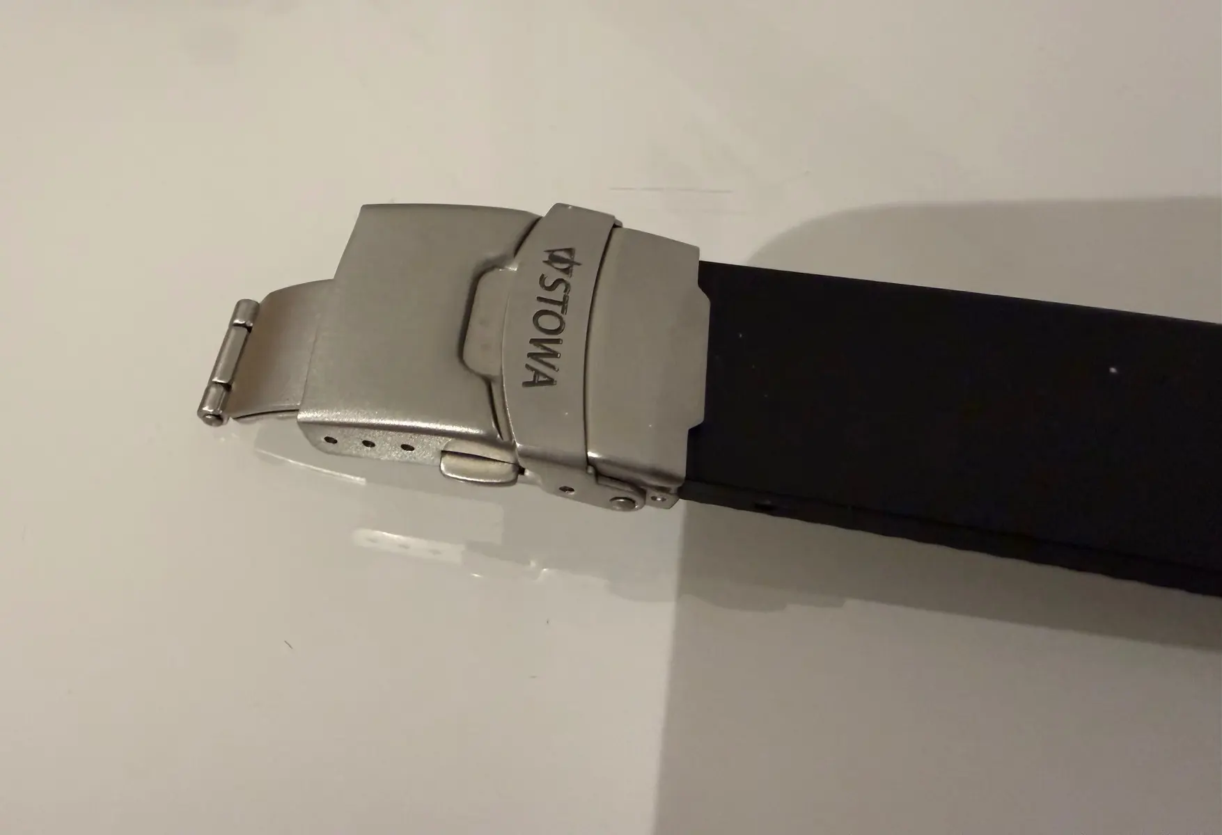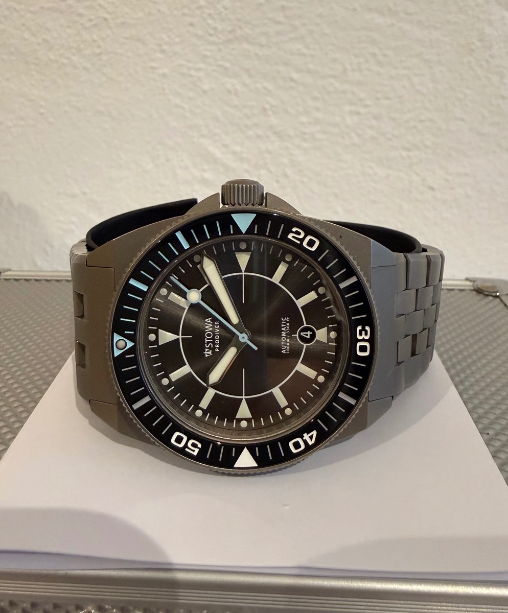 mit Titan-Band und neuem, ungetragenen schwarzem Kautschukband und Stowa-Schliese.