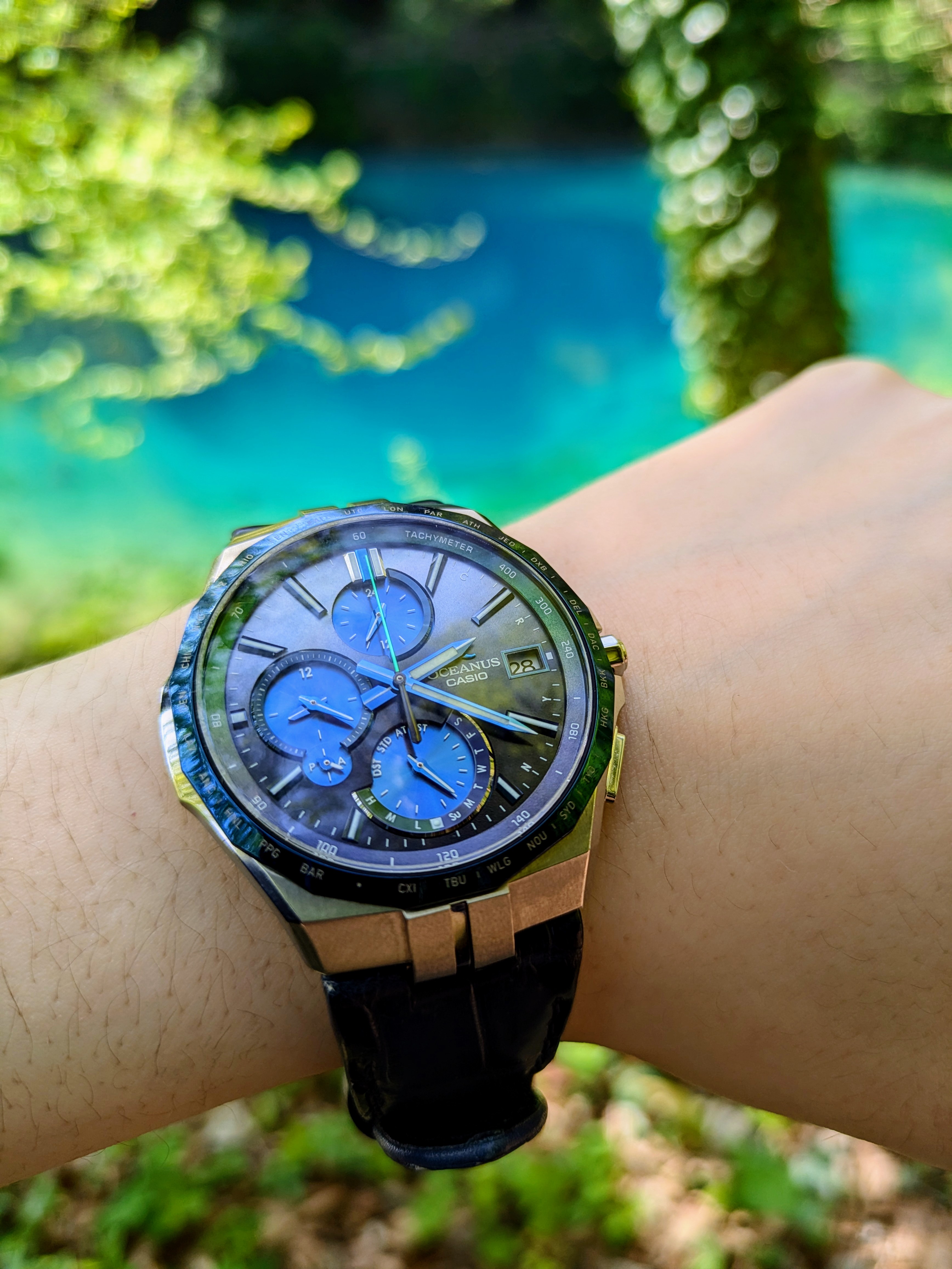 Ja sie ist eine Casio Oceanus, Nr. OCW-S5000APL-2AJF aus der Serie "Japan Indigo", seit 11.2020 in Japan verkauft und inzwischen ausverkauft. Veröffentlicht wurden zwei s5000-Modell und zwei t2600-Modell, Bild angehängt... Diese blau-grüne gefällt mir am besten