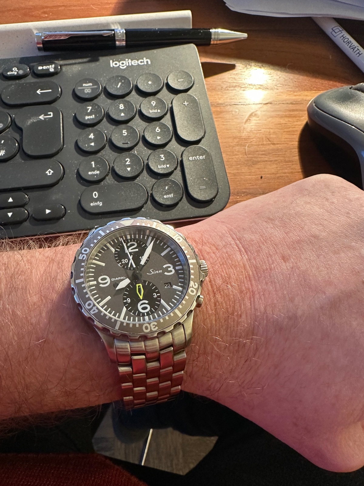 Ich habe seit 2008 (habe ich endlich mal nachgeschaut) eine 757 DIAPAL (vorher: eigentlich fast immer ohne Uhr am Handgelenk unterwegs, wenn waren es meist sehr leichte Quarzer...die hatte ich weil so leicht immer vergessen anzuziehen und es dann ganz gelassen, hatte ja relativ früh auch ein Handy. Tja...und dann hatte ein Sinn-Mitarbeiter auf einer Firmenfeier, bei der ich als externer aufgrund freundschaftlicher Beziehungen eingeladen war, mit dem Thema "Sinn/(Frankfurt" in Kombination mit Automatik-Uhr ("fühl mal am Handgelenk...die lebt!") und DIAPAL "angefixt". Hat zwar noch ca. ein jahr gedauert, bis ich meine erste Automatik gekauft habe, aber die hab ich dann kaum noch ausgezogen.