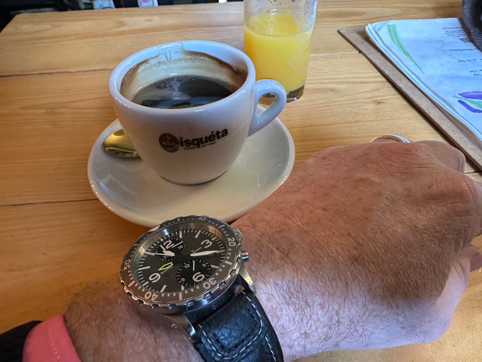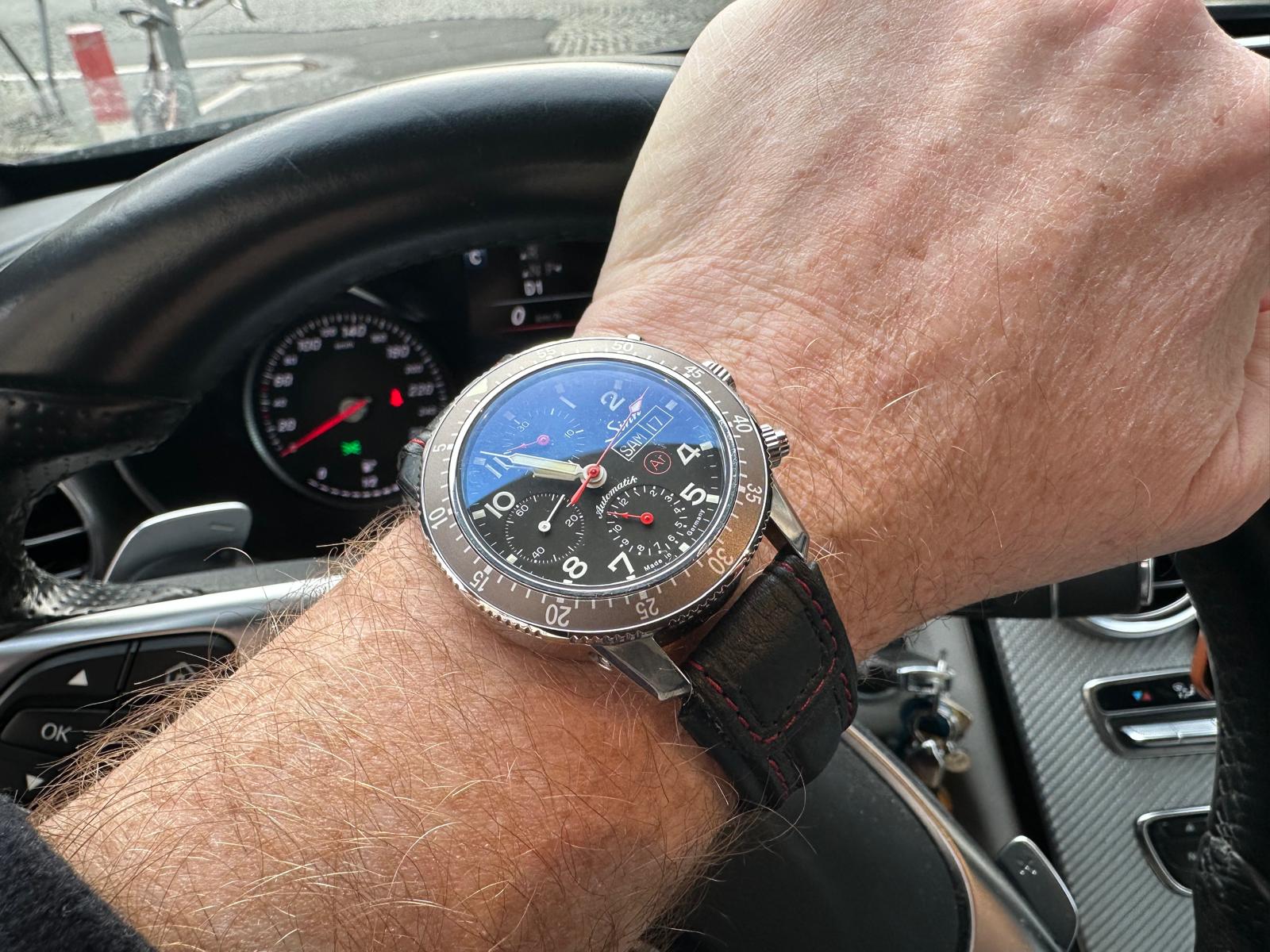 In der zweiten Wartung/Revision seit der 757 Anschaffung (die Ar-Kapsel wurde blau...oder bläulich) hat's mir dann meine Ersatz-Quarz nicht mehr getan: Ich habe mir zur Überbrückung eine 103 St Sa gebraucht (im Oktober letztes Jahr) gekauft und die mit DIAPAL, AR-Technologie anderen Chrono-Zeigern und Ar-Zifferblatt vom Sinn-Team aufmotzen lassen...und parallel habe ich die im Vergleich eher zierliche 2010er Omega Aqua Terra meines verstorbenen Vaters in "Handgelenks-Rotation" genommen.