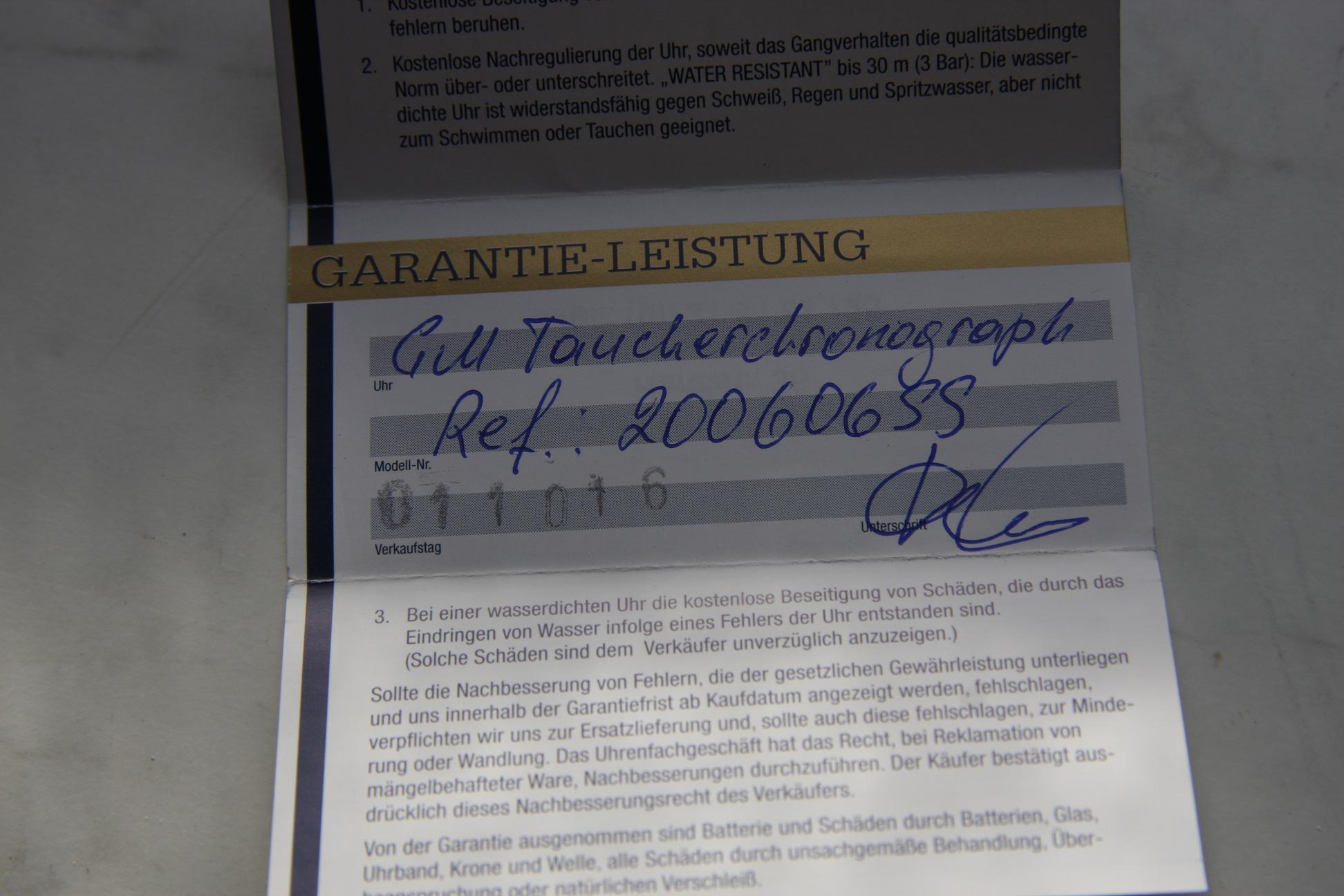 Der Chronograph wird mit Original - Garantieschein ( natürlich abgestempelt ), dem Hinweis zur Handhabung des Werkes sowie dem Originalkarton geliefert.
