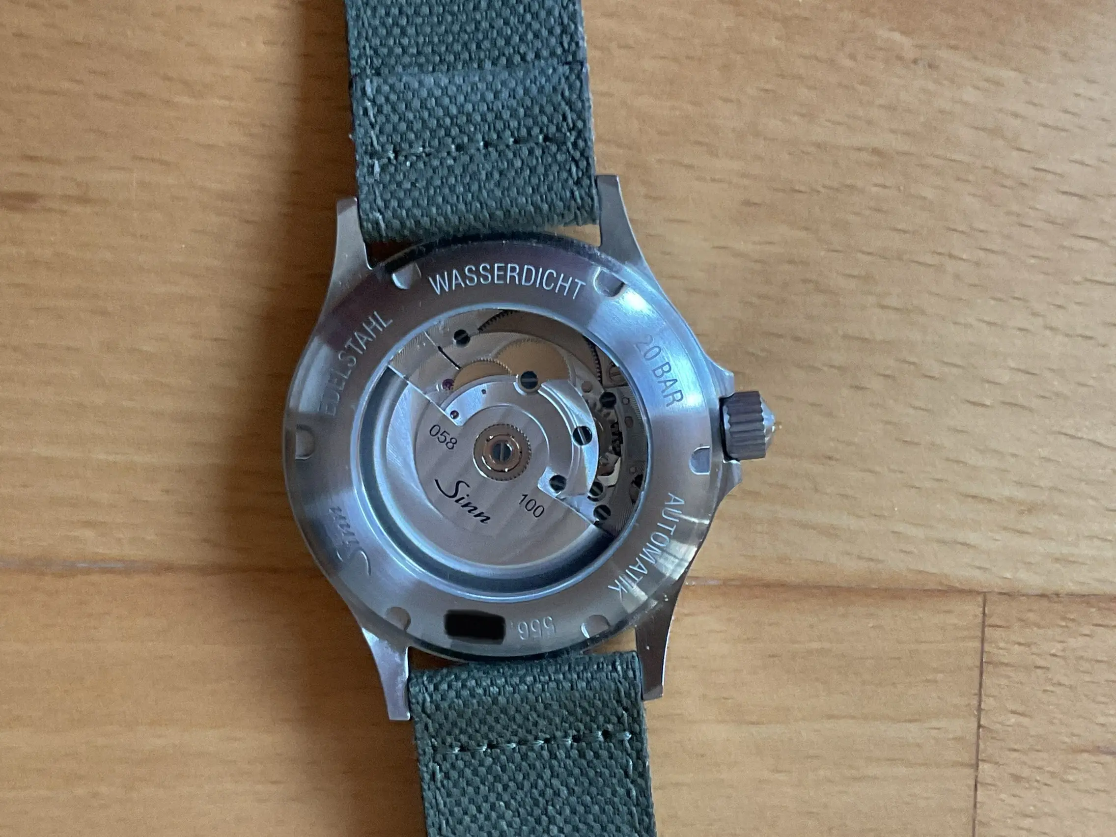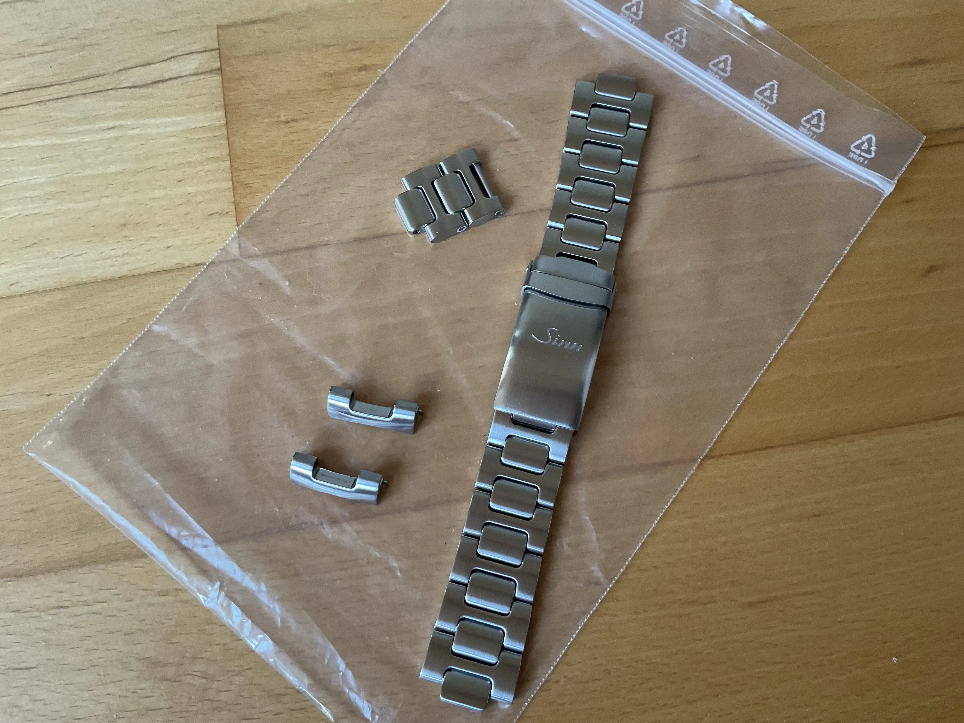 Lieferumfang: Die Uhr mit Stahlband, Original Box und Umverpackung, Sinn-Garantiekarte sowie Bedienungsanleitung. Das Canvasband gehört ebenfalls zum Lieferumfang.
