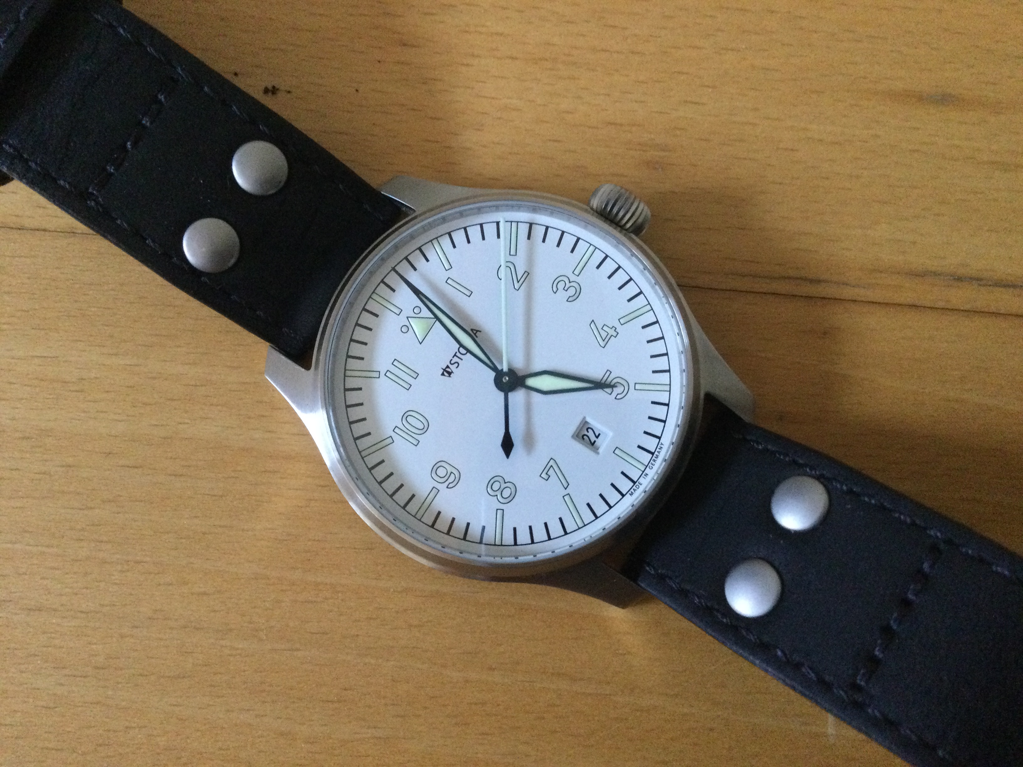 zum Verkauf steht meine Stowa Fliegeruhr Klassik 40 weiß Handaufzug aus 06/2021.