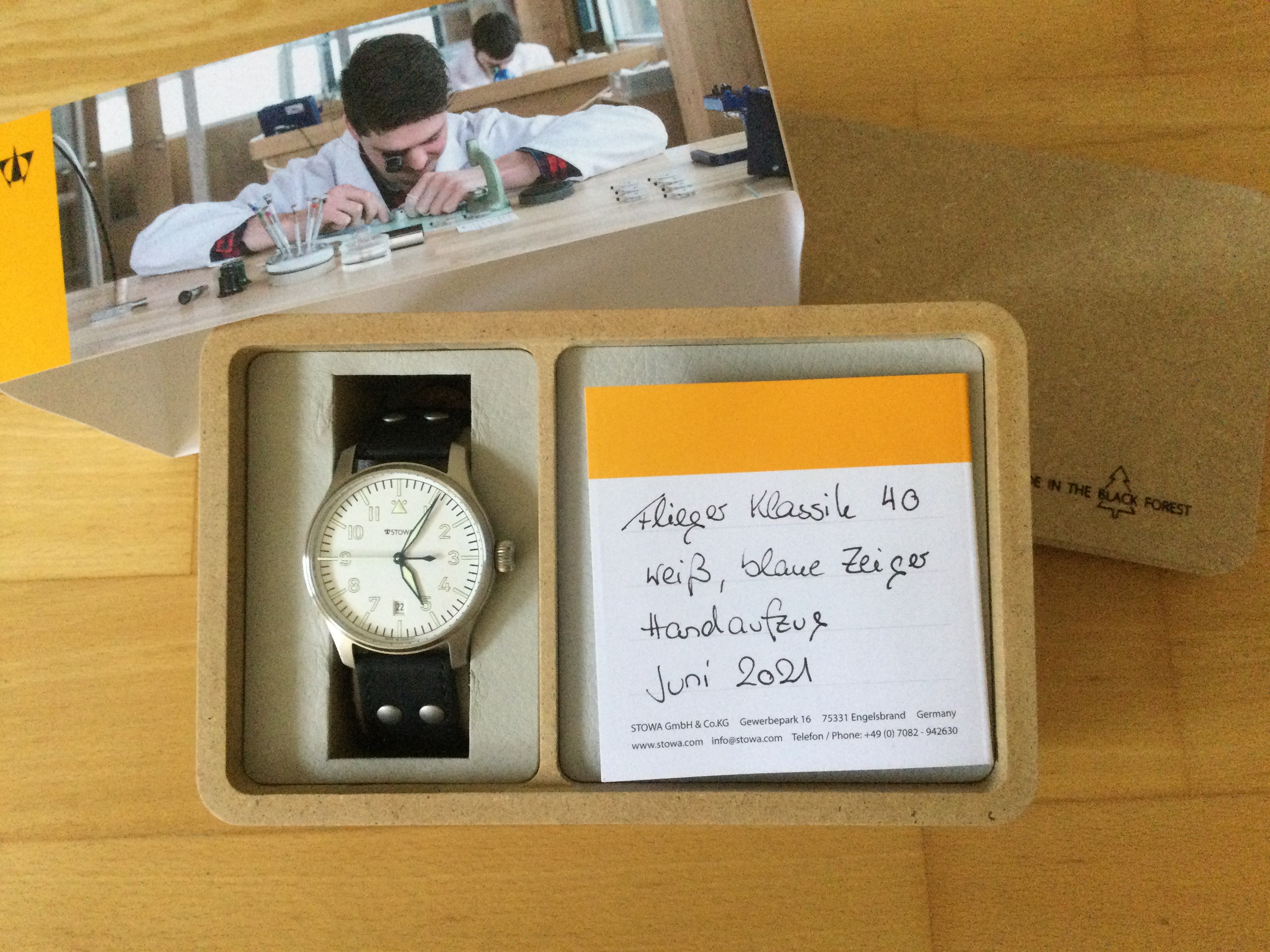 Die Uhr ist gebraucht bzw. bereits getragen. Sie ist aus 1. Hand (bei der Fa. Stowa im Juni 2021 von mir gekauft).