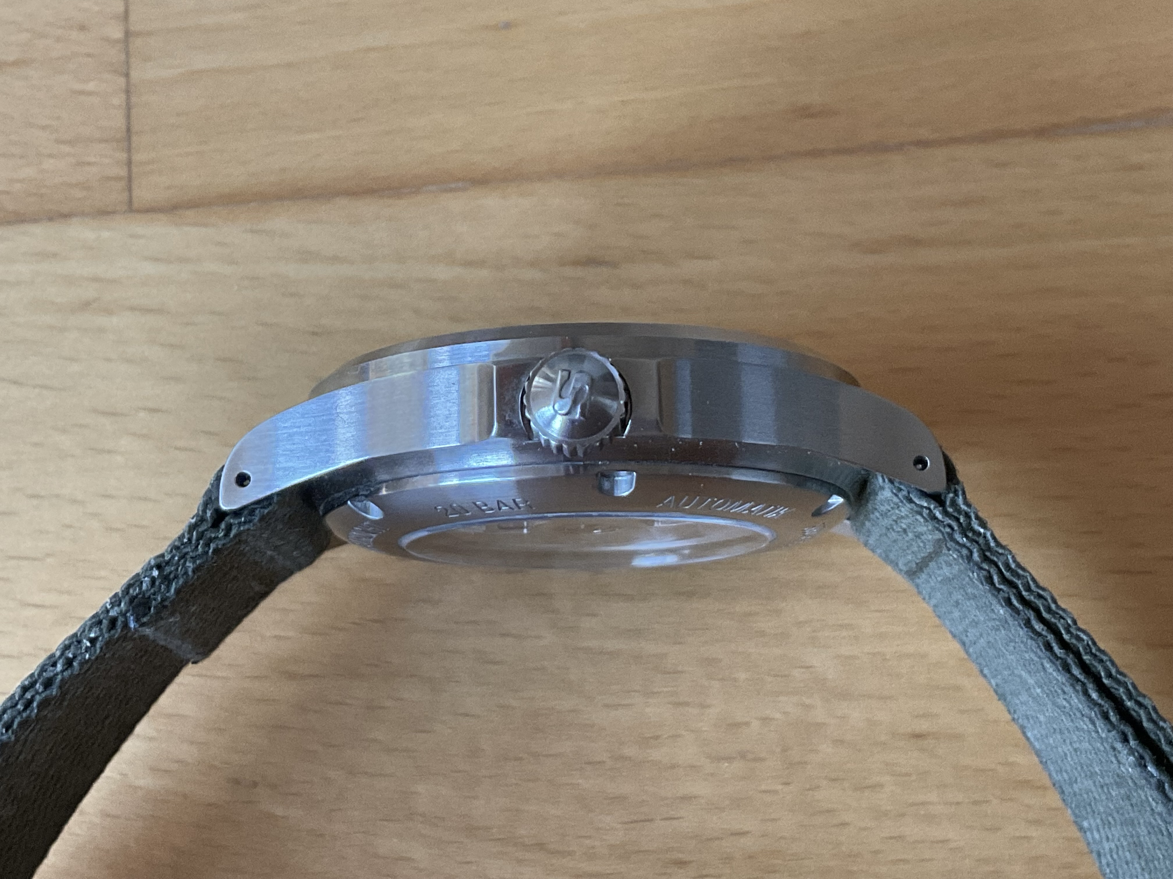 Die Uhr ist gebraucht. Sie ist aus 1. Hand und wurde relativ wenig getragen. Ich habe die Uhr fast ausschließlich mit dem verbauten „Safari Canvas Uhrenarmband“ von Bulang and Sons getragen.