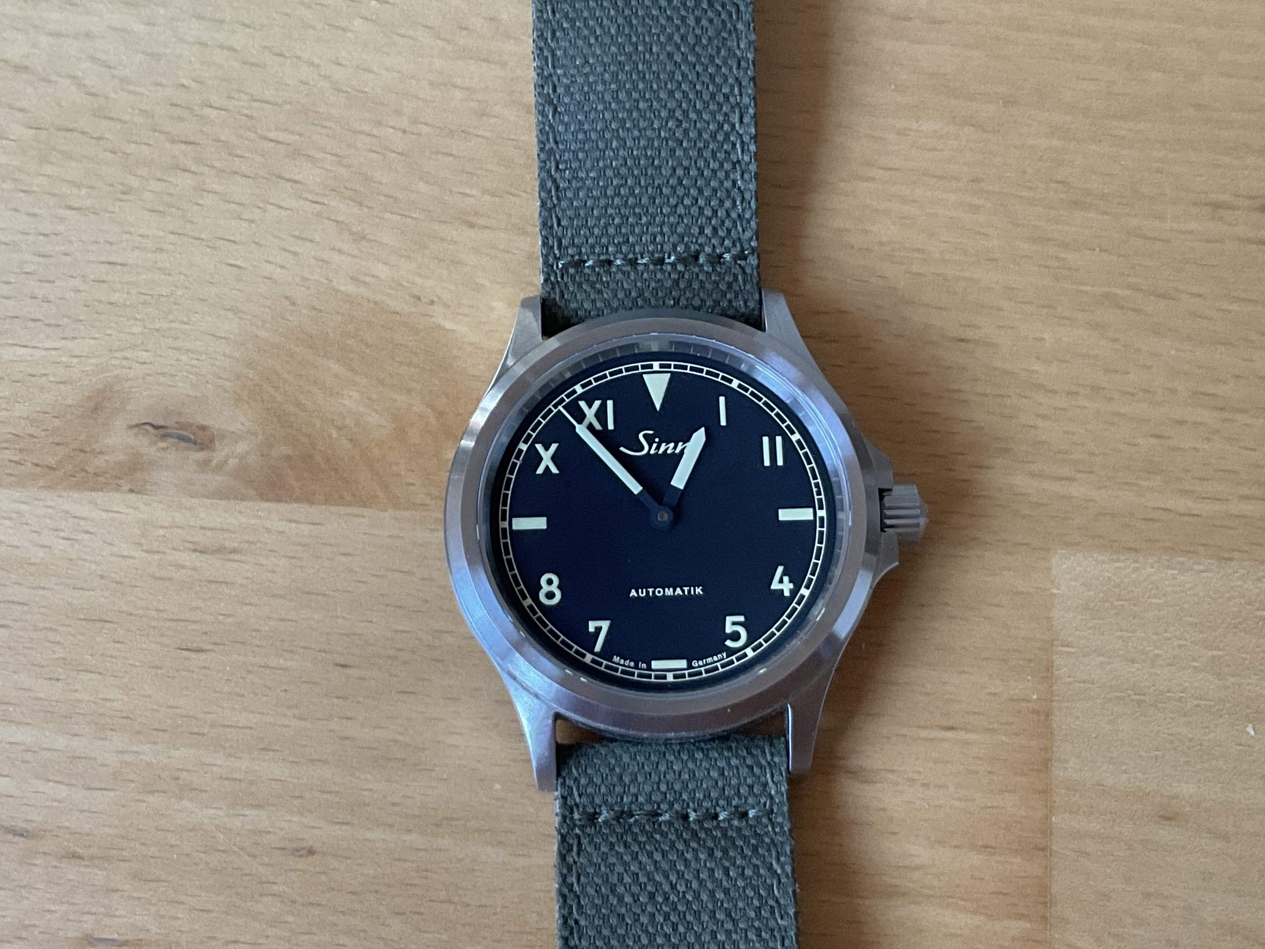 Biete meinen sehr gut erhaltenen Sinn-Fliegerchronographen "Modell 103 Klassik" mit schwarzem Lederband zum Verkauf an.