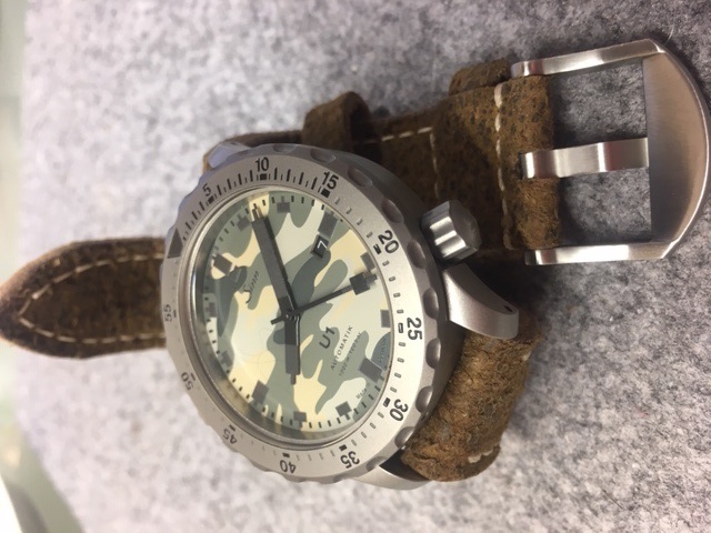 Nach langer Suche habe dann endlich ein passendes Lederband gefunden. Na gut Mays von mays-berlin hat mir eins gemacht und ich finde es wunderbar zur U1 Camouflage.