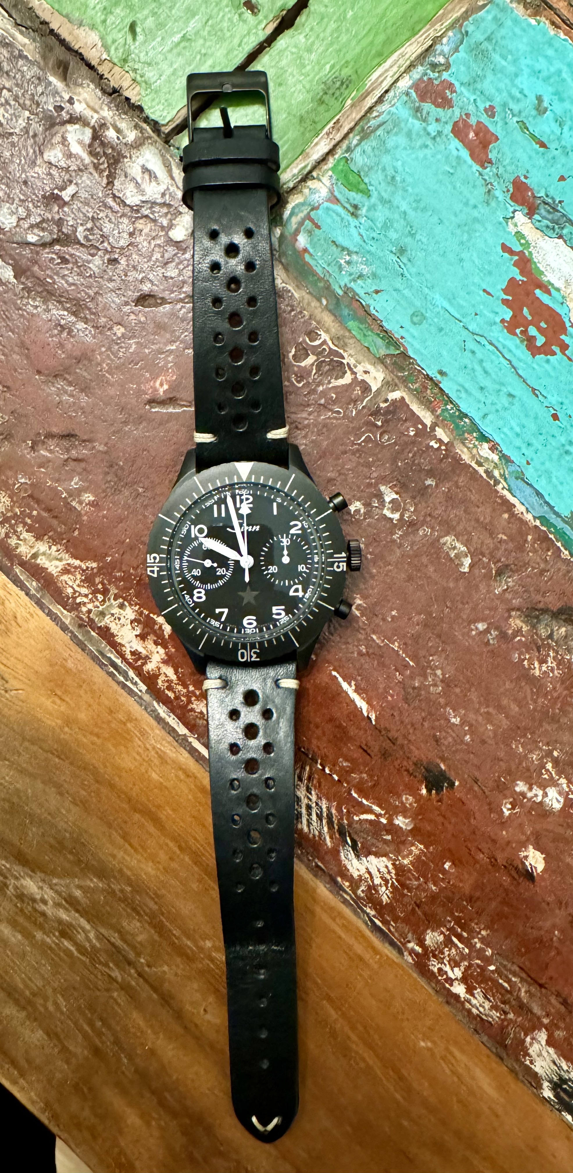 Meine 155 am Sinn Rindsleder mit Gehäuseintegration. Ich finde eine der schönsten Kombis nach dem Bund. Die Uhr gehört, von der Historie gesehen, einfach an Leder. Schön beim Sinn ist, das durch die Unterlage die 20 mm breiter wirken bzw nur die Anstöße 20 mm sind und nicht das ganze Band. Ich hatte bereits Natos probiert, haben mir aber alle nicht sooo gut gefallen. Die einzige Kombi die geil war, ist ein original Phoenix Strap in Admiral Gray. Sieht Hammer aus der Kontrast.