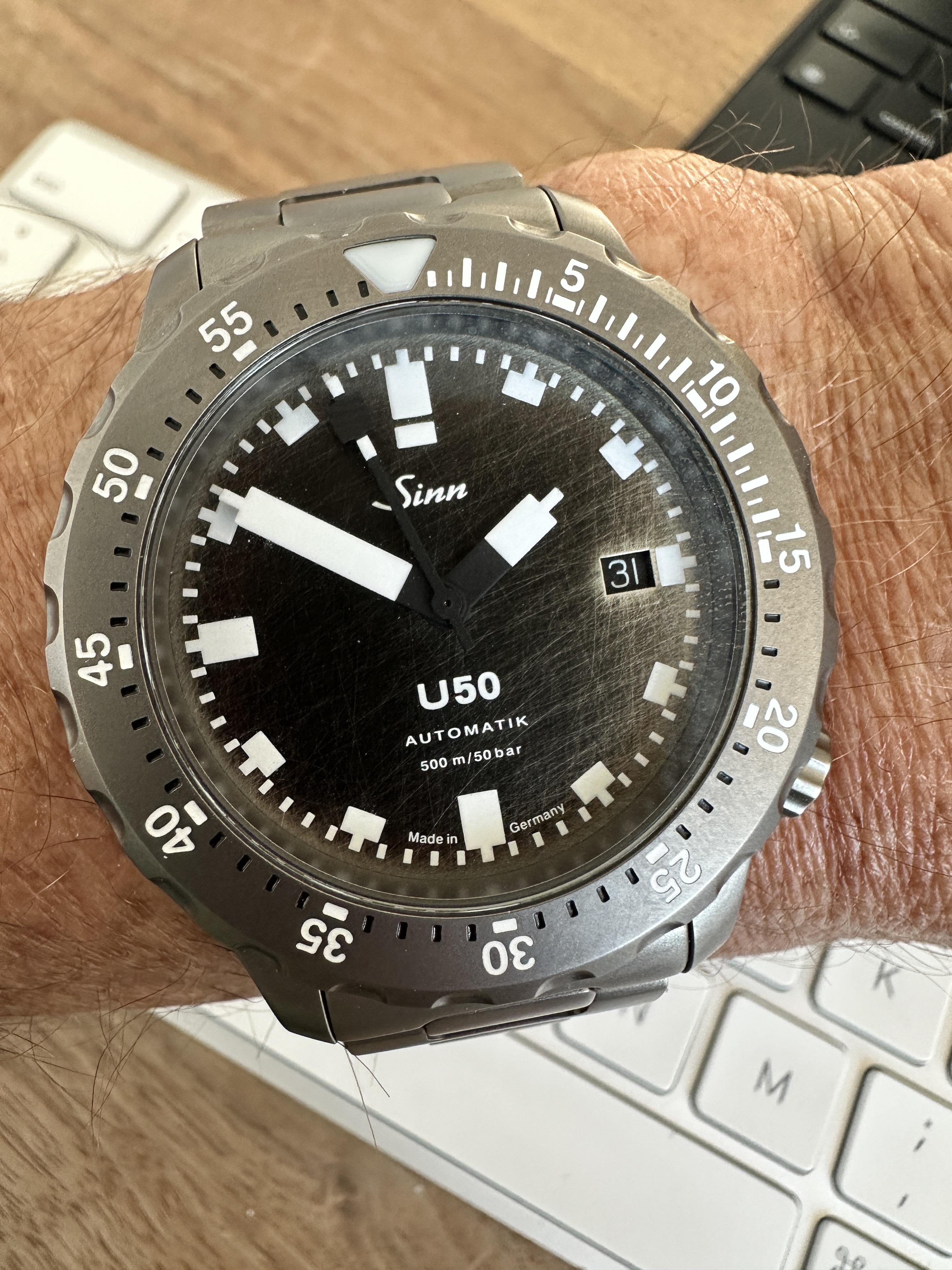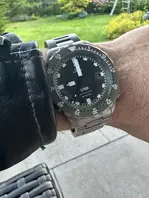 Heute den Deskdiver... hatte gestern einen ungeplanten Boxenstopp in Sossenheim (Uhr war über Nach stehengeblieben) - im Service wurde die Unruh wieder eingehängt und jetzt schnurrt er wieder. So mag ich das.