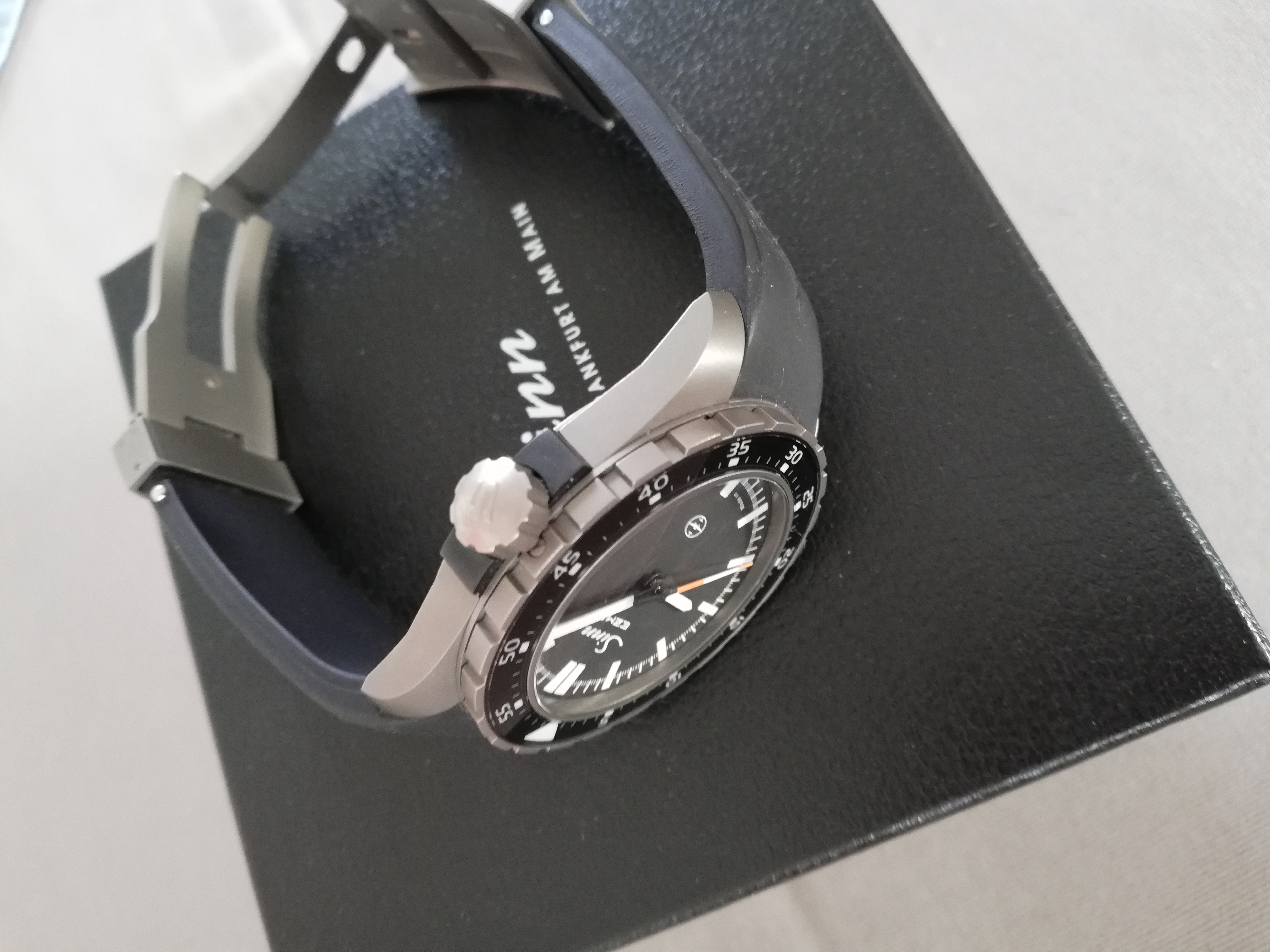 kürzen. Trotz der Größe ist die Uhr aus Reintitan sehr leicht. Sie kommt mit Kautschukbank,
