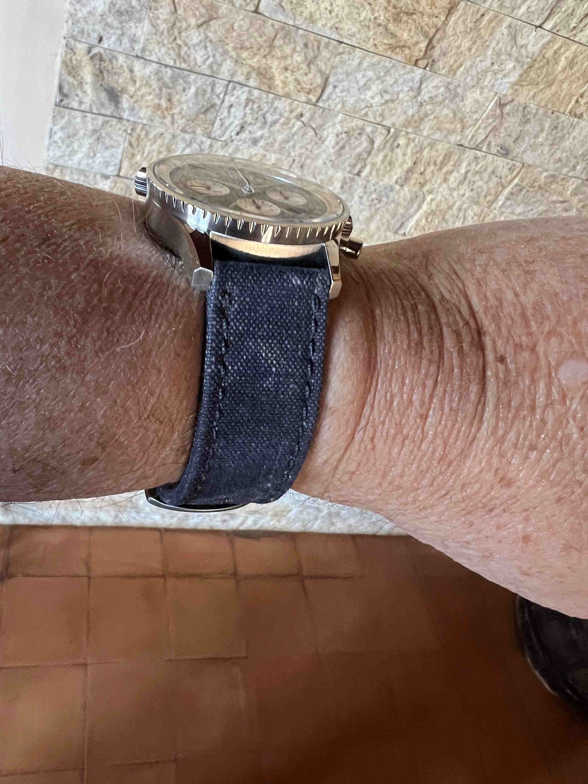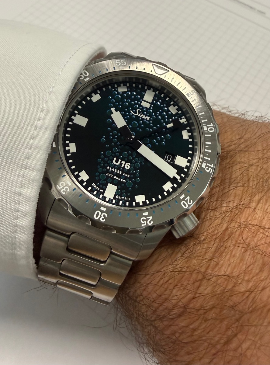 Meinen Glückwunsch zu Deinem Neuerwerb. Die blaue 903 hat mir auch schon immer als Ergänzung meiner 903 Handaufzug mit schwarzem Zifferblatt aus dem Jahr 1994 gefallen. Ich habe mich dann aber für eine der letzten alten 903 St B E entschieden, die ich 2023 noch bei Sinn bekam. Vom 5 gliedrigen Metallband habe ich sie auf ein toll dazu passendes Canvas Band umgerüstet, welches eine kleine Band-Manufraktur in der Bähe von Denver/Colorado/USA für mich fertigte. Es wurde aus den Resten eines Postsacks der Britischen Marine aus dem Jahr 1942 gemacht. Sehr geschichtsträchtig!