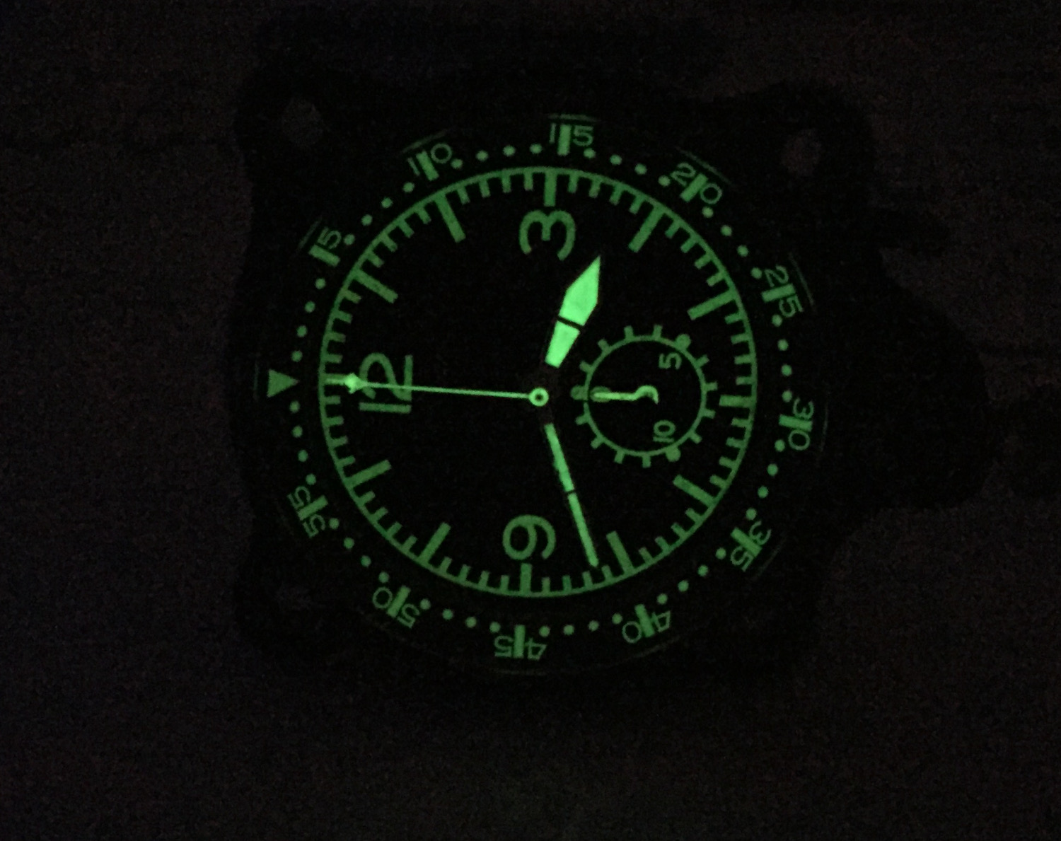 Tja, aber dem geneigten Beobachter fällt natürlich gleich auf, daß die verbaute Borduhr eine Bo-Uk1 umgerüstet auf Tageslicht Leuchtfarbe ist. Schmale Zeiger, grünliche LM - Bo-Uk1F Flour - typisch Nachkrieg der 1960-1970er Jahr und hier nicht ganz passend. Wobei hier natürlich sein kann, dass alle Instrumente auf nicht radioaktive LM umgerüstet wurden. Das wäre mal eine Frage an die Haltergemeinschaft wert.