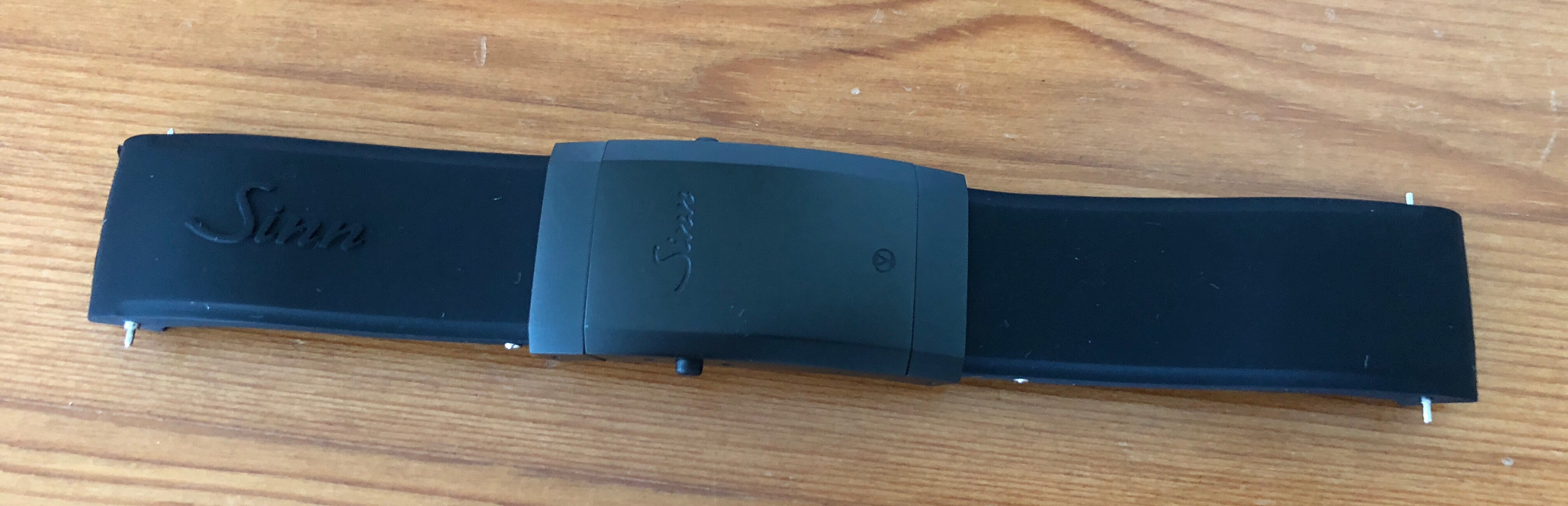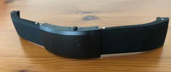 Ein Anderer hat sicher mehr Freude an dem Band, als ich.Das Silikonband ist gekürzt, die tolle, große Faltschließe mit Bandverlängerung ist tegimentiert, schwarz hartstoffbeschichtet und perlgestrahlt - passt perfekt zum schwarzen Silikon!