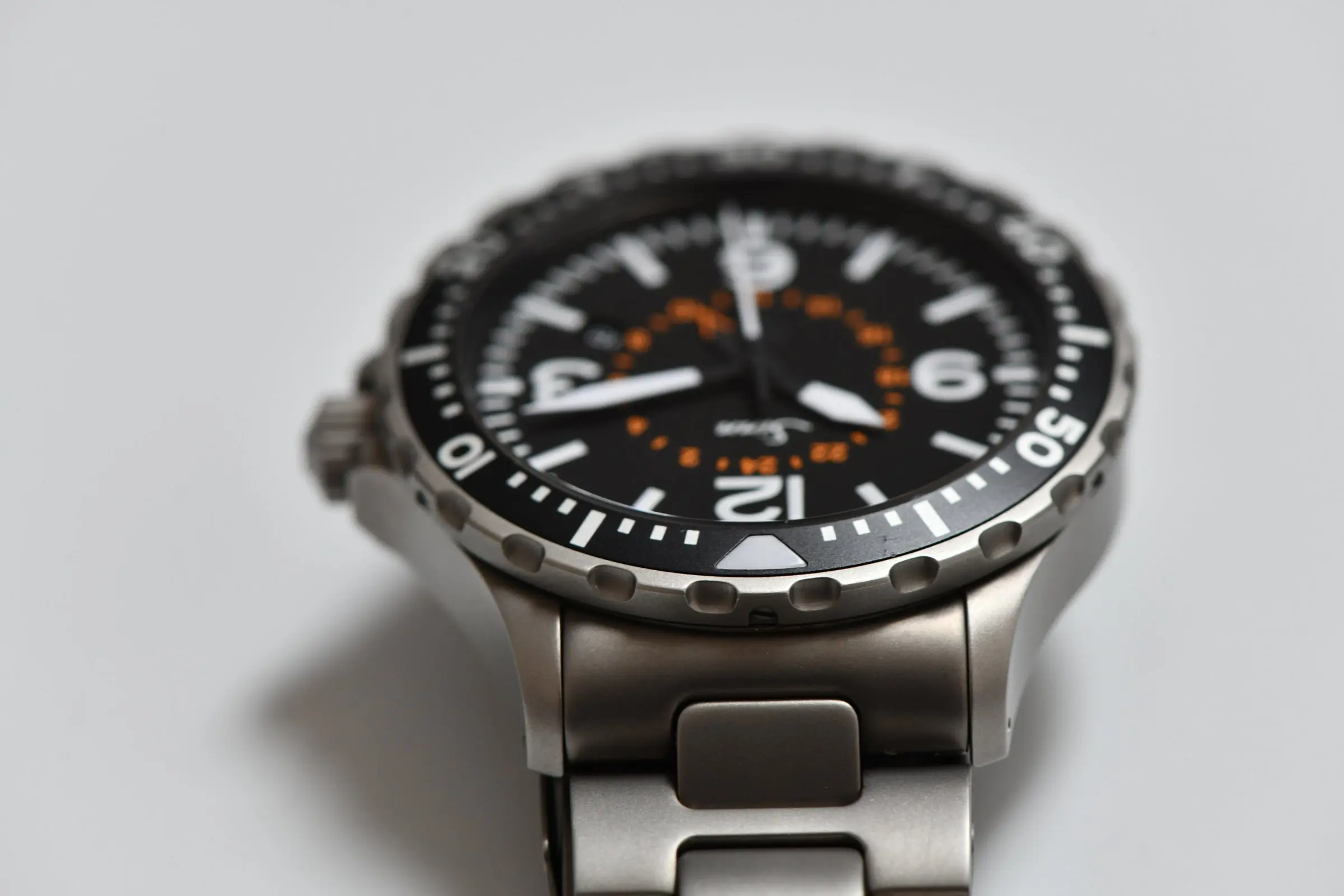 Die Uhr samt Band ist kaum getragen, in neuwertigem Zustand und kommt mit einem tegimentierten Massivband. Sie wurde im Dezember 2016 gekauft, es besteht also noch etwas Garantieanspruch, und ist eines der letzten ausgelieferten Exemplare.
