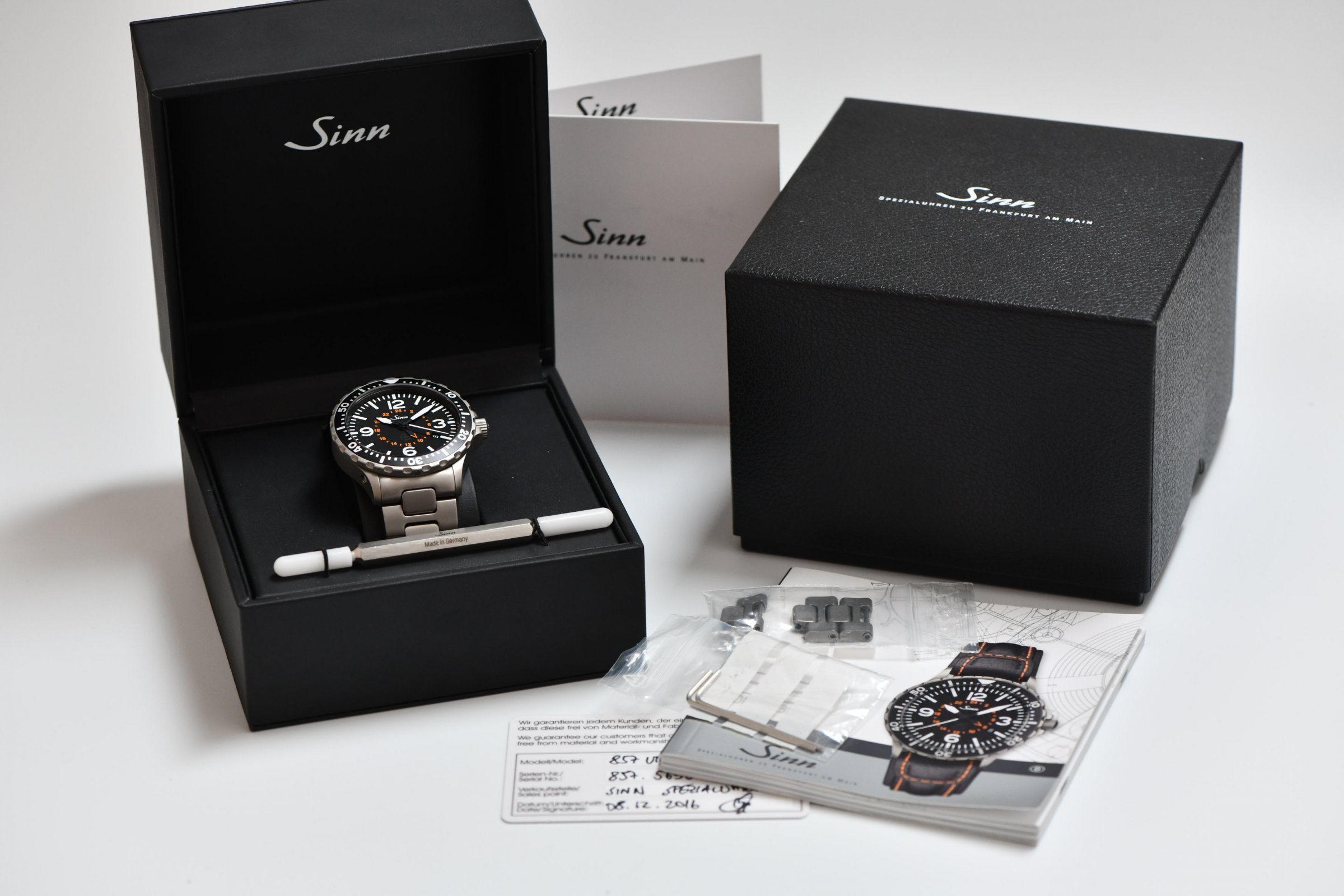 hier biete ich meine volltegimentierte Sinn 857 UTC TESTAF an. Die Uhr wurde vor etwa drei Jahren durch das Nachfolgemodell (VFR) ersetzt. Die TESTAF-Version ist mittlerweile selten geworden und eine sehr gesuchte Uhr.