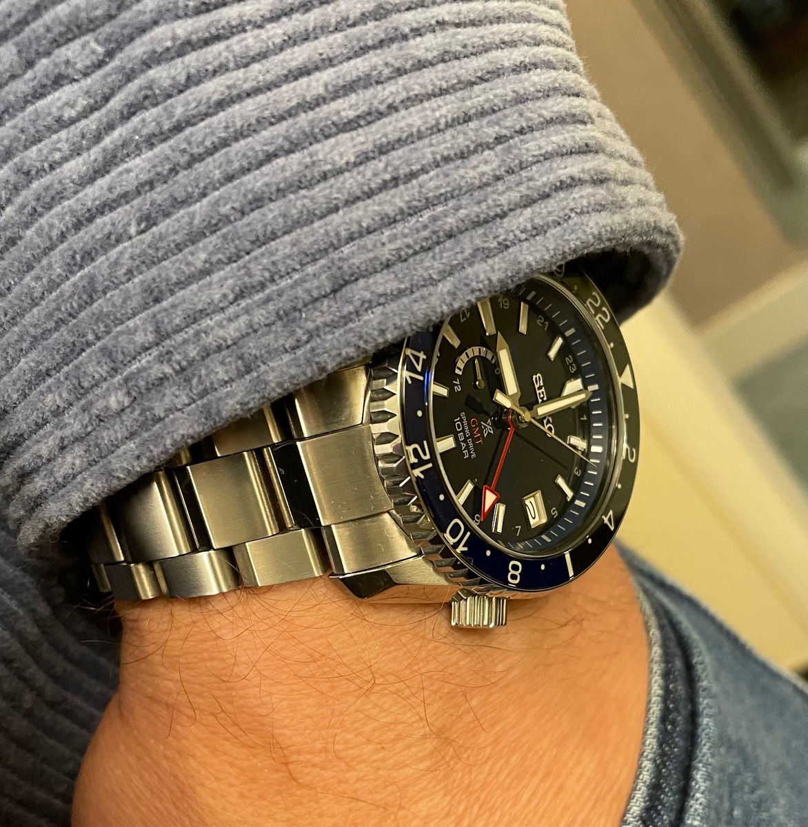 Das Blatt ist blau - vielleicht bekomm‘ ich das nachher im Sonnenlicht noch eingefangen.ThemaSeiko LX GMT oder SNR033J1