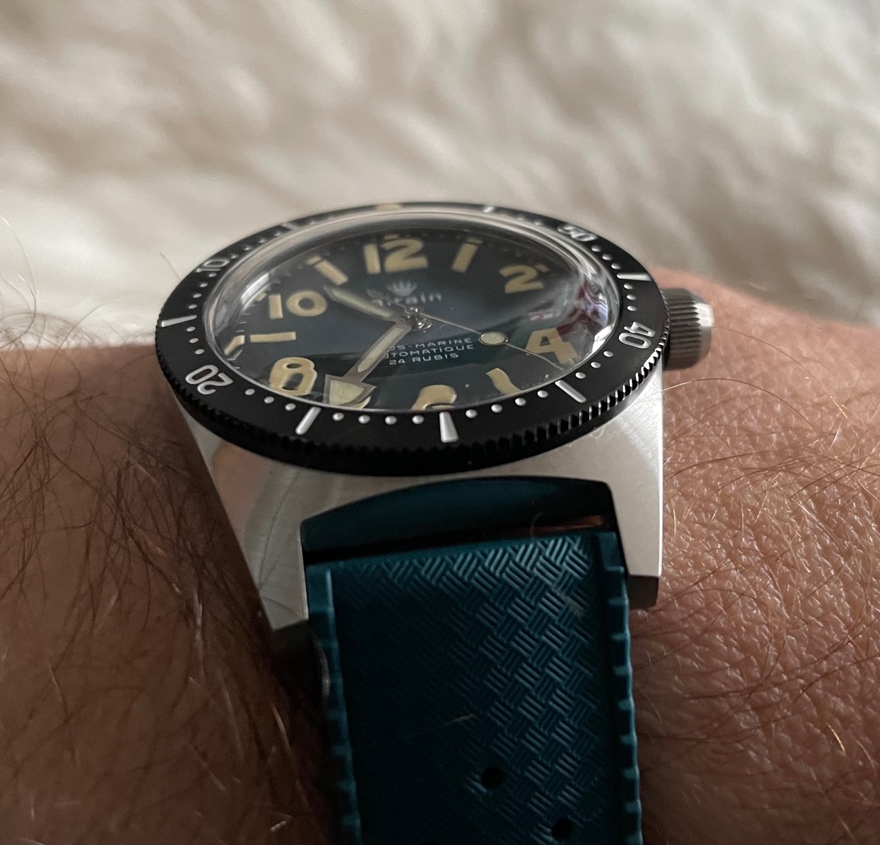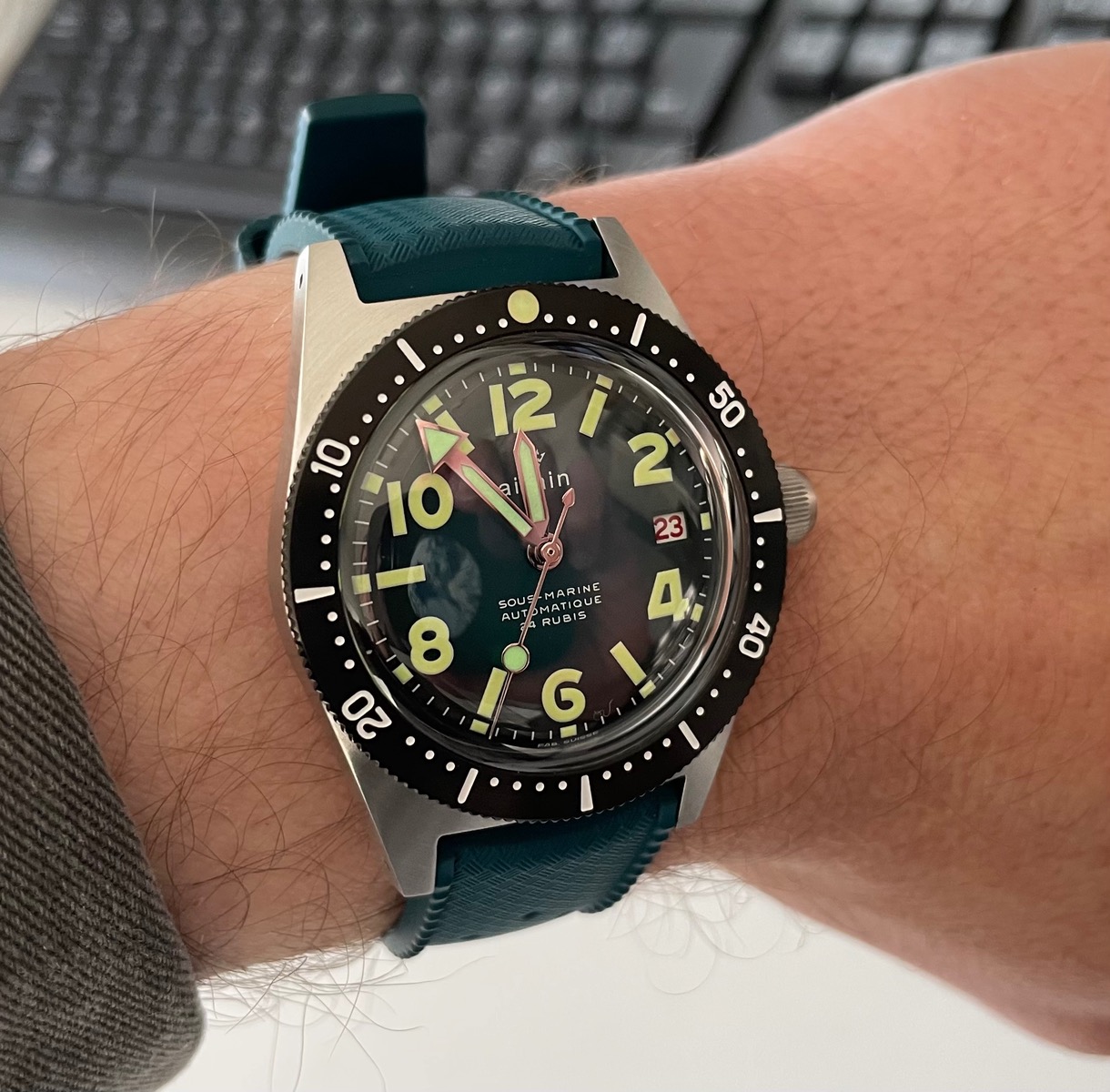 Aber so kann ich mir wenigstens Gedanken darüber machen, ob mir die Neuerscheinung von Omega gefällt. Die Planet Ocean erinnert mich jetzt an Uhren von Grand Seiko.Aber am Kautschukband sieht es trotzdem klasse aus. Das Stahlband mit der glänzenden, mittleren Reihe mag mir noch nicht so gefallen.