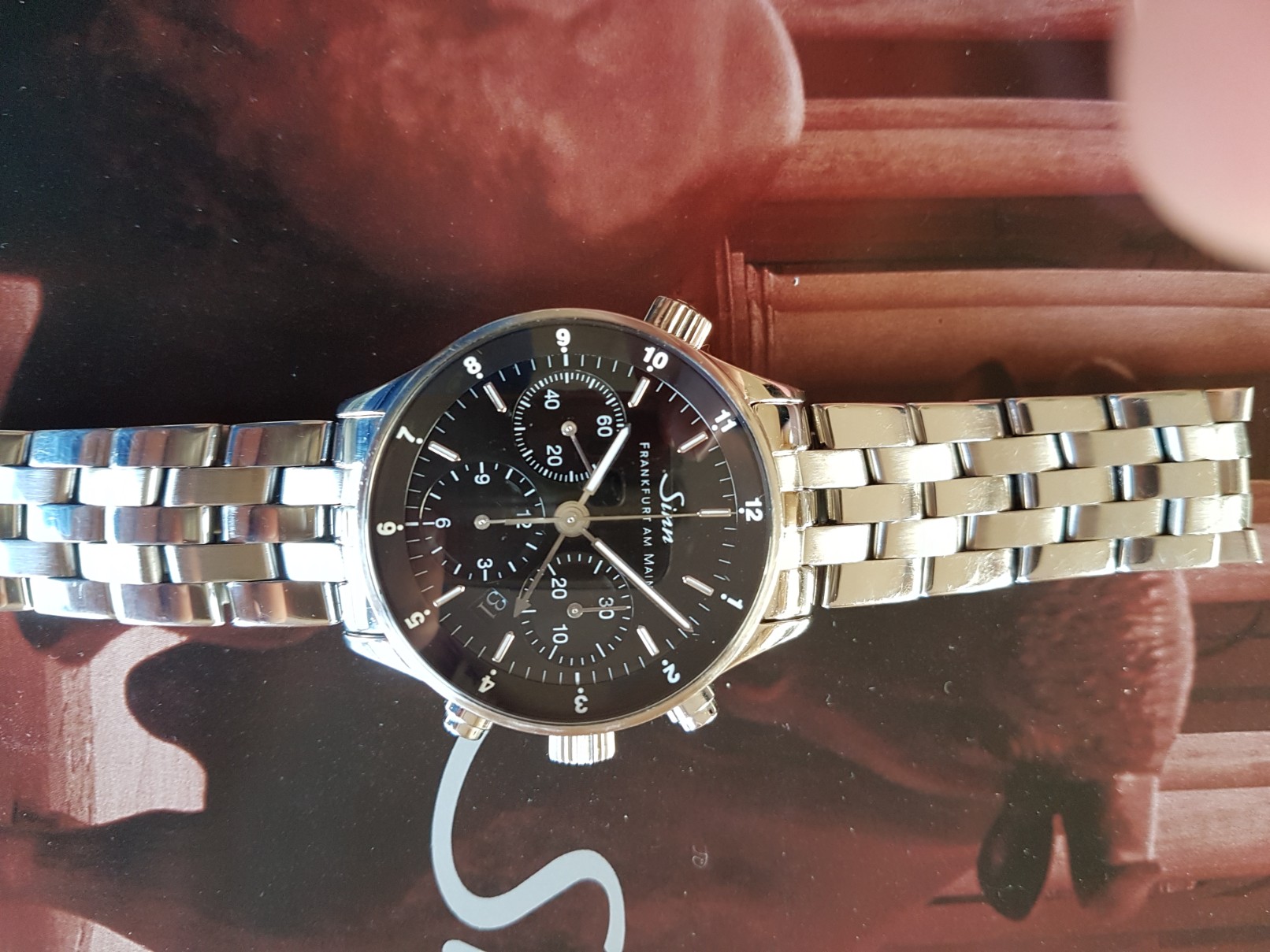 Die Finanzplatzuhr habe ich stets von der Fa. Sinn und der Bergischen Uhrmacher Werkstatt (Christina Schröder) revisionieren (insgesamt 3x) lassen. Die Uhr ist 18 Jahre alt, wurde gerne getragen und hat dementsprechend Tragespuren. Wer eine absolut neuwertige Uhr kaufen möchte, sollte für 3.490 Euro LP eine neue Finanzplatzuhr OHNE Flyback kaufen oder in eine Gehäuseaufarbeitung investieren. Das Werk läuft sehr gut, die Chronofunktionen schalten für ein 7750er extrem butterweich, ein paar Bewegungen reichen schon und der Sekundenzeiger fängt an zu laufen.